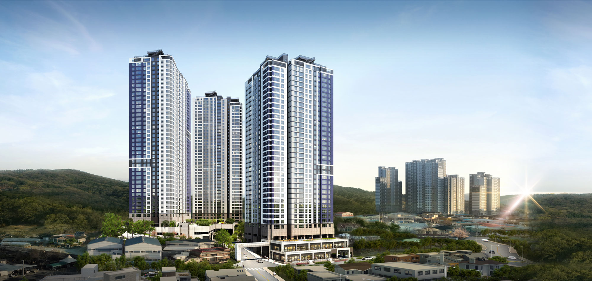 다산 월드메르디앙 센텀하이는 하나로마트·드림마트, 다산 행정복합타운 접근이 쉽고, 좌학근린공원·성지산·불당산·낙동강 수변으로 이어지는 녹지축을 일상 산책 코스로 누릴 수 있습니다. 상업·행정·자연을 10~15분 생활권 안으로 끌어들인 구성이 돋보입니다.