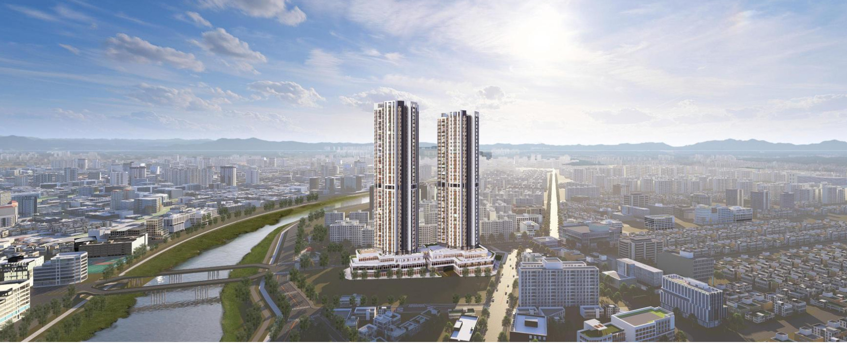 위치는 중구 유천동 337-1번지 일대, 주거와 상업이 결합된 주상복합입니다. 대지면적 약 7,431㎡, 지하 4층~지상 38~40층 2개 동의 고층 스카이라인이 계획되었고, 전 세대 남향 위주 배치로 채광·일조를 극대화했습니다. 40층 실루엣이 만드는 수직 스카이라인은 원도심의 새 랜드마크로서 상징성까지 더합니다.